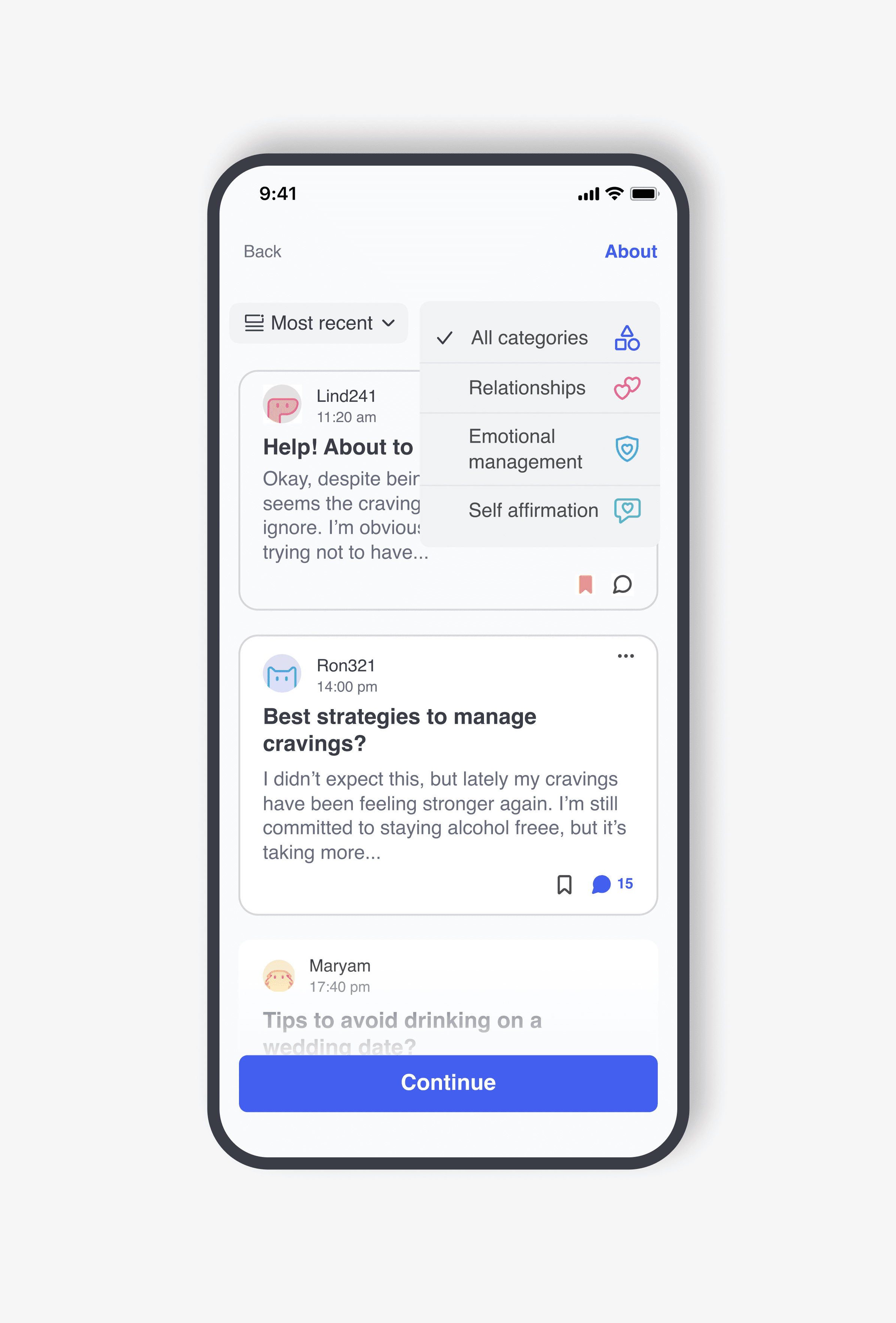 Even if both were planned features, but we could only build one properly. Research made the call clear: modifying behaviors around alcohol, unlike smoking, is rooted on a needed support or community layer. Gamification was deferred.
