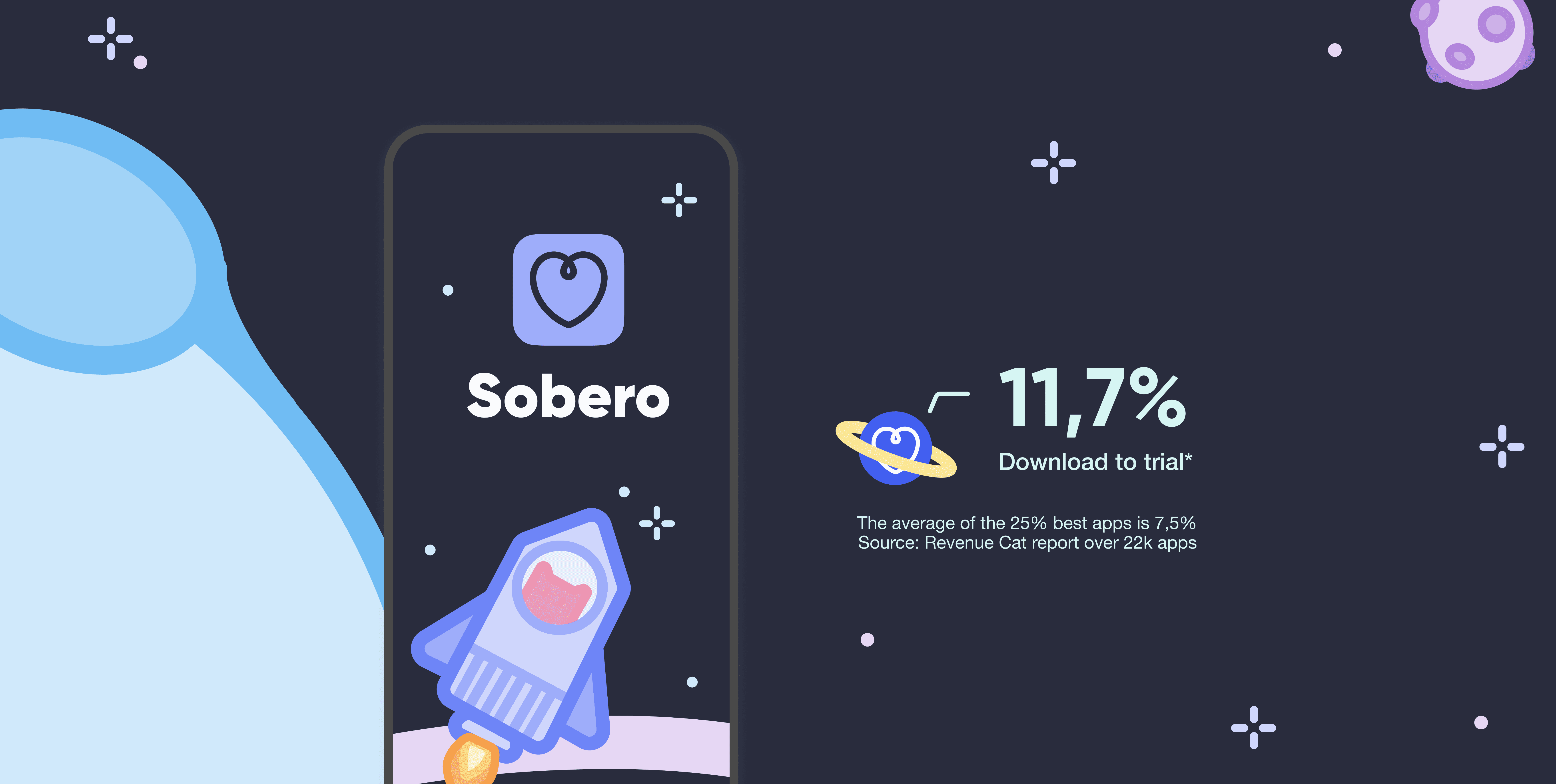 📲 11.7% download-to-trial conversion in month one (vs. 7.5% top 25% benchmark, RevenueCat).